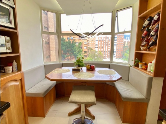 Piso 5.  146 m2 distribuidos en 4 alcobas familiares, 3 baños familiares más alcoba de servicio con su baño, estar, sala y comedor independientes muy amplios. Tenía balcón y se puede devolver la reforma para volver a tener el balcón. Cocina en perfecto estado con comedor auxiliar. 2 parqueaderos paralelos y útil. Ascensores repotenciados.