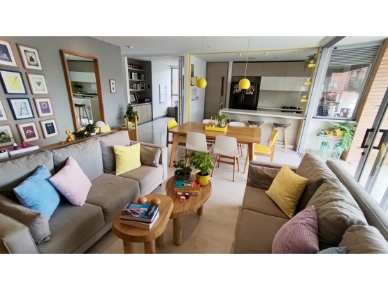 Vendo moderno e impecable apartamento. Piso 20 con espectacular vista. Tiene 158 m2 distribuidos en 3 alcobas con baño y vestier, estudio independiente, sala comedor, cocina abierta, gran balcón con hermosa vista, baño social, alcoba de servicio con baño y zona de ropas independiente. 2 parqueaderos paralelos y cuarto útil.
